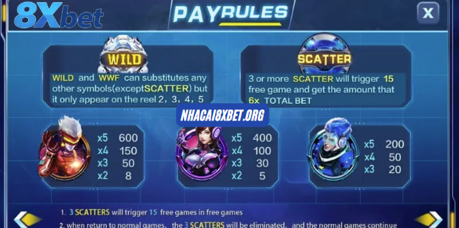 - Khi có từ 3 biểu tượng Scatter trở lên, bạn sẽ nhận 15 lượt quay miễn phí.